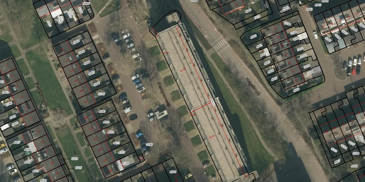Het perceel waarop Patrijzenveld 68 staat heeft een oppervlakte van 1545 m². Dit is een zeer groot perceel. De perceeloppervlakte wordt geregistreerd door het Kadaster. Gedetailleerde informatie over de maten van dit perceel kunt u vinden in het rapport Kadastrale kaart met maatvoering van Patrijzenveld 68.