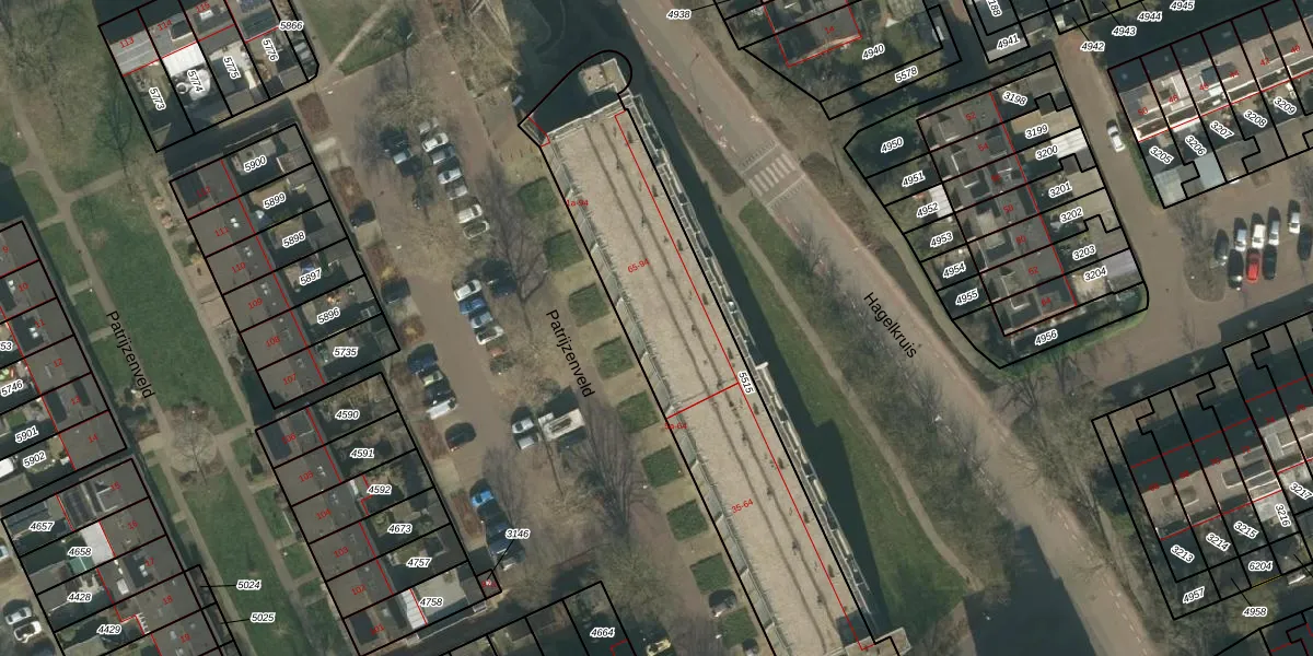 Het perceel waarop Patrijzenveld 78 staat heeft een oppervlakte van 1545 m². Dit is een zeer groot perceel. De perceeloppervlakte wordt geregistreerd door het Kadaster. Gedetailleerde informatie over de maten van dit perceel kunt u vinden in het rapport Kadastrale kaart met maatvoering van Patrijzenveld 78.