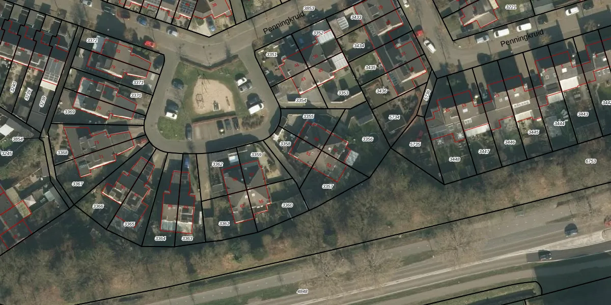 Het perceel waarop Penningkruid 51 staat heeft een oppervlakte van 181 m². Dit is een middelgroot perceel. De perceeloppervlakte wordt geregistreerd door het Kadaster. Gedetailleerde informatie over de maten van dit perceel kunt u vinden in het rapport Kadastrale kaart met maatvoering van Penningkruid 51.