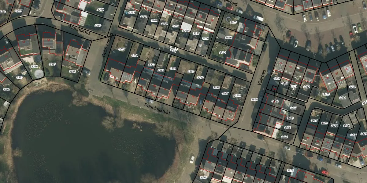 Het perceel waarop Penningkruid 62 staat heeft een oppervlakte van 193 m². Dit is een middelgroot perceel. De perceeloppervlakte wordt geregistreerd door het Kadaster. Gedetailleerde informatie over de maten van dit perceel kunt u vinden in het rapport Kadastrale kaart met maatvoering van Penningkruid 62.