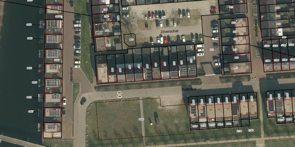 Het perceel waarop Potbeker 13 staat heeft een oppervlakte van 134 m². Dit is een middelgroot perceel. De perceeloppervlakte wordt geregistreerd door het Kadaster. Gedetailleerde informatie over de maten van dit perceel kunt u vinden in het rapport Kadastrale kaart met maatvoering van Potbeker 13.