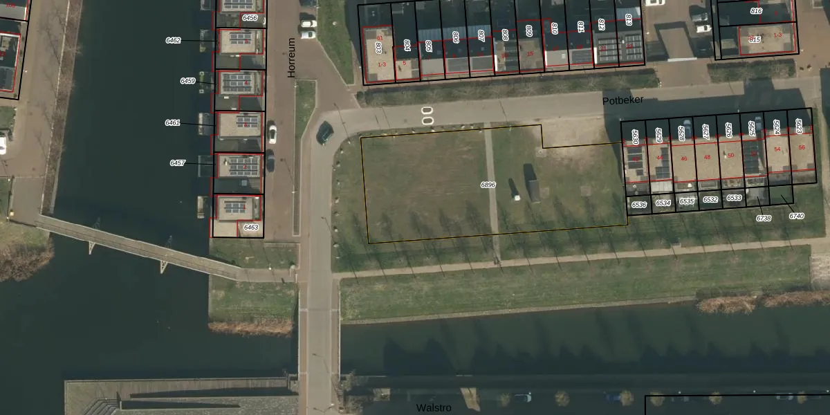 Het perceel waarop Potbeker 16 staat heeft een oppervlakte van 1496 m². Dit is een zeer groot perceel. De perceeloppervlakte wordt geregistreerd door het Kadaster. Gedetailleerde informatie over de maten van dit perceel kunt u vinden in het rapport Kadastrale kaart met maatvoering van Potbeker 16.