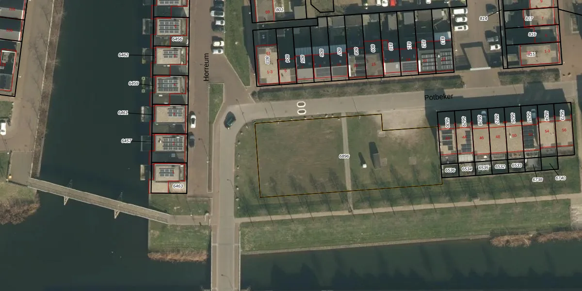 Het perceel waarop Potbeker 32 staat heeft een oppervlakte van 1496 m². Dit is een zeer groot perceel. De perceeloppervlakte wordt geregistreerd door het Kadaster. Gedetailleerde informatie over de maten van dit perceel kunt u vinden in het rapport Kadastrale kaart met maatvoering van Potbeker 32.