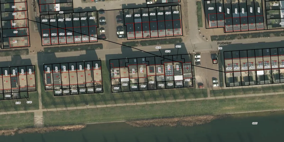 Het perceel waarop Potbeker 78 staat heeft een oppervlakte van 119 m². Dit is een middelgroot perceel. De perceeloppervlakte wordt geregistreerd door het Kadaster. Gedetailleerde informatie over de maten van dit perceel kunt u vinden in het rapport Kadastrale kaart met maatvoering van Potbeker 78.