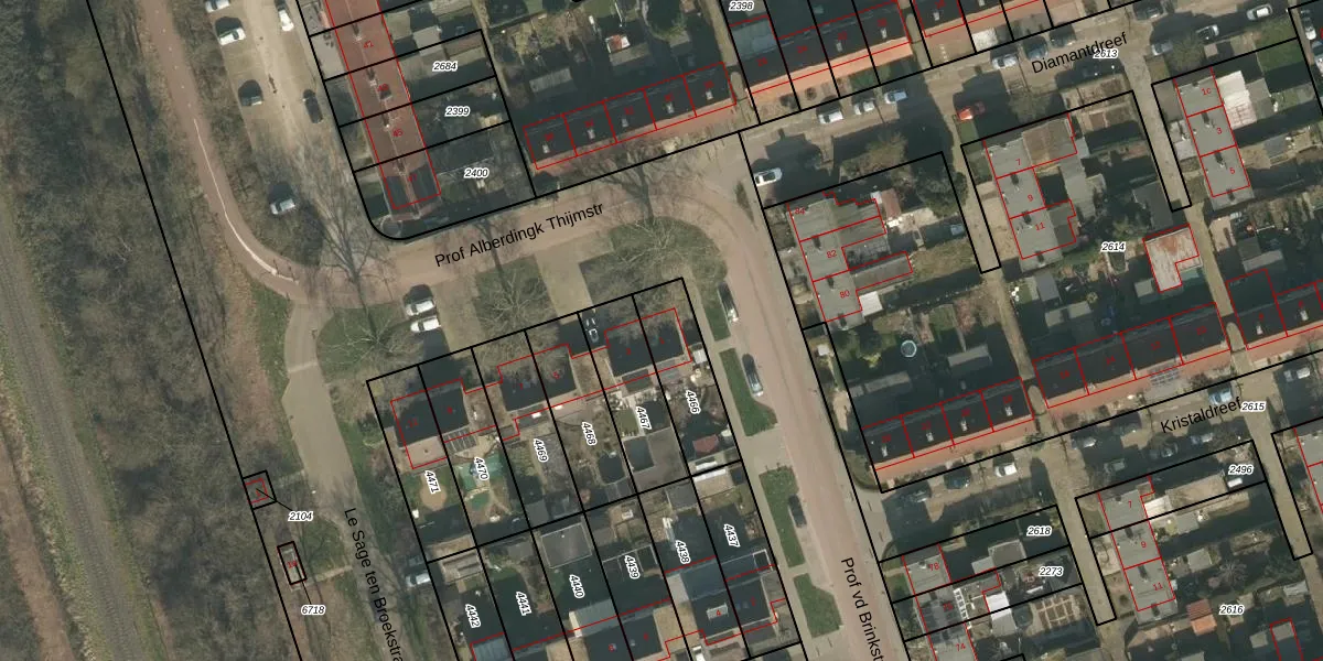 Prof Alberdingk Thijmstr 1 is gelegen op kadastraal perceel CUI00A4466. Deze kadastrale aanduiding is uniek en wordt gebruikt door het Kadaster om eigendomsrechten en andere zakelijke rechten vast te leggen. Het perceel maakt onderdeel uit van de kadastrale gemeente Cuijk.