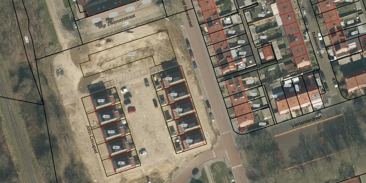 Prof vd Brinkstraat 29 is gelegen op kadastraal perceel CUI00A6803. Deze kadastrale aanduiding is uniek en wordt gebruikt door het Kadaster om eigendomsrechten en andere zakelijke rechten vast te leggen. Het perceel maakt onderdeel uit van de kadastrale gemeente Cuijk.