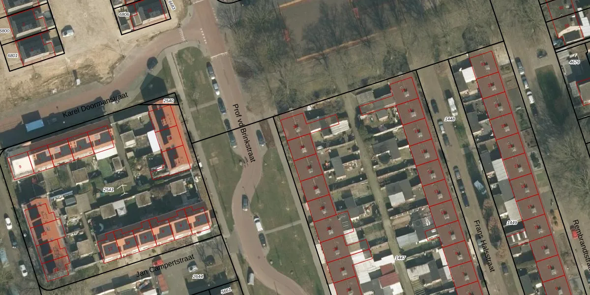 Prof vd Brinkstraat 34 is gelegen op kadastraal perceel CUI00A1447. Deze kadastrale aanduiding is uniek en wordt gebruikt door het Kadaster om eigendomsrechten en andere zakelijke rechten vast te leggen. Het perceel maakt onderdeel uit van de kadastrale gemeente Cuijk.