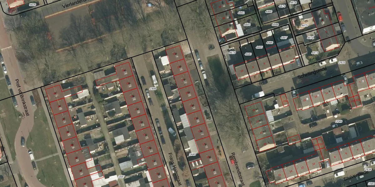 Het perceel waarop Rembrandtstraat 25 staat heeft een oppervlakte van 2375 m². Dit is een zeer groot perceel. De perceeloppervlakte wordt geregistreerd door het Kadaster. Gedetailleerde informatie over de maten van dit perceel kunt u vinden in het rapport Kadastrale kaart met maatvoering van Rembrandtstraat 25.