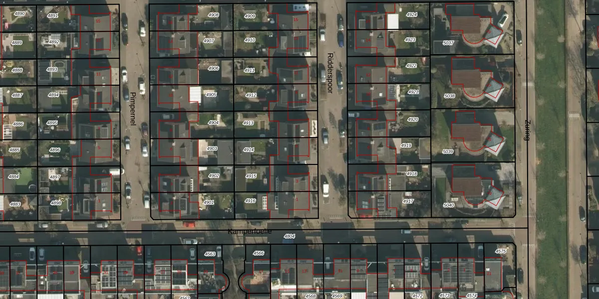 Ridderspoor 5 is gelegen op kadastraal perceel CUI00A4914. Deze kadastrale aanduiding is uniek en wordt gebruikt door het Kadaster om eigendomsrechten en andere zakelijke rechten vast te leggen. Het perceel maakt onderdeel uit van de kadastrale gemeente Cuijk.