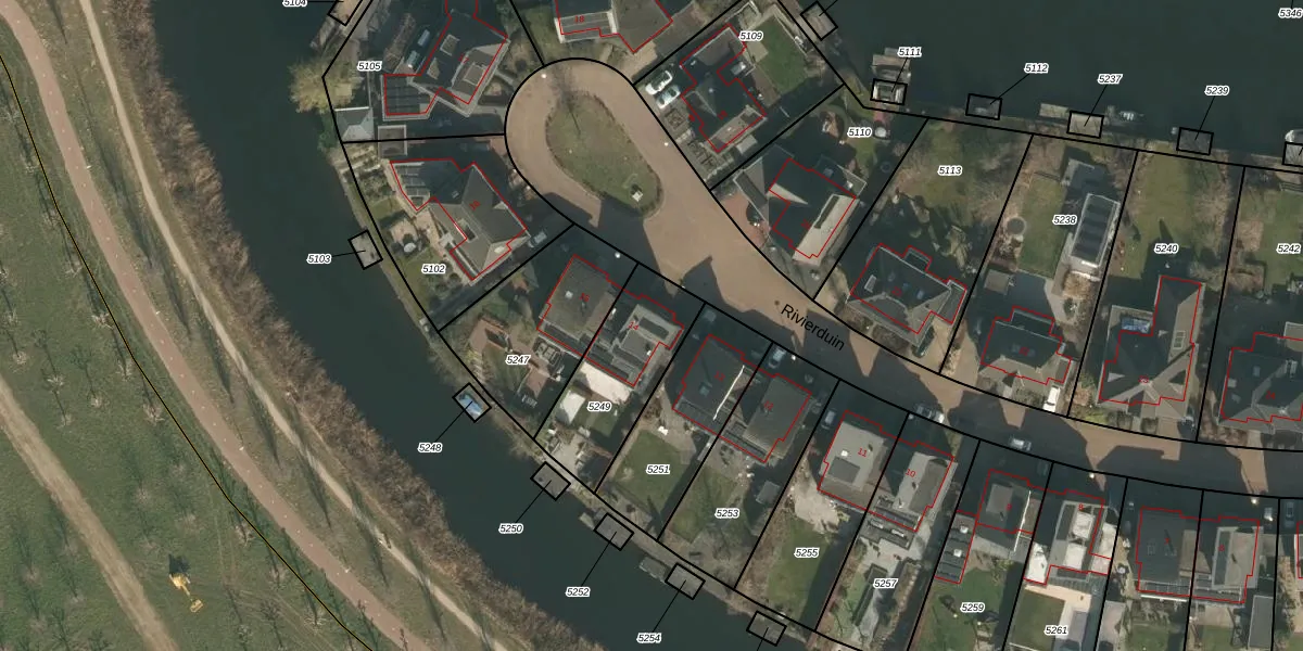 Het perceel waarop Rivierduin 14 staat heeft een oppervlakte van 397 m². Dit is een groot perceel. De perceeloppervlakte wordt geregistreerd door het Kadaster. Gedetailleerde informatie over de maten van dit perceel kunt u vinden in het rapport Kadastrale kaart met maatvoering van Rivierduin 14.
