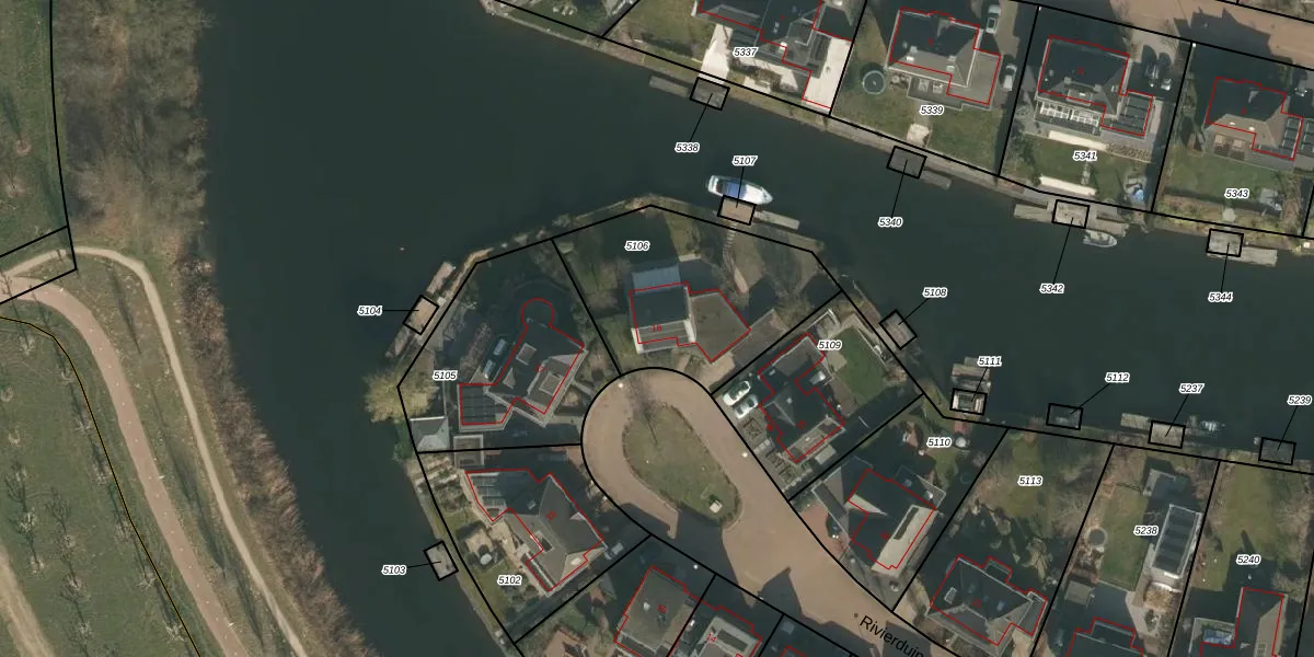 Het perceel waarop Rivierduin 18 staat heeft een oppervlakte van 762 m². Dit is een groot perceel. De perceeloppervlakte wordt geregistreerd door het Kadaster. Gedetailleerde informatie over de maten van dit perceel kunt u vinden in het rapport Kadastrale kaart met maatvoering van Rivierduin 18.