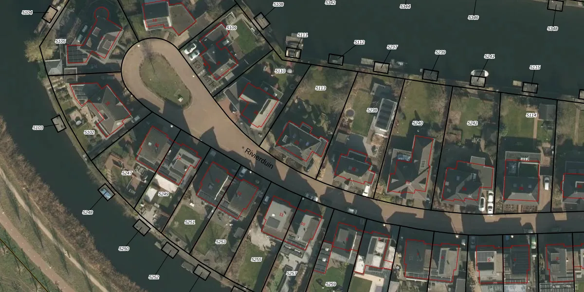 Het perceel waarop Rivierduin 21 staat heeft een oppervlakte van 701 m². Dit is een groot perceel. De perceeloppervlakte wordt geregistreerd door het Kadaster. Gedetailleerde informatie over de maten van dit perceel kunt u vinden in het rapport Kadastrale kaart met maatvoering van Rivierduin 21.