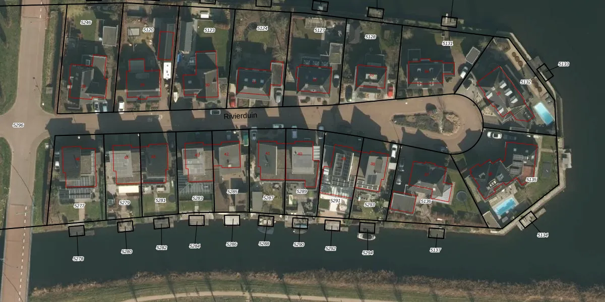 Het perceel waarop Rivierduin 40 staat heeft een oppervlakte van 338 m². Dit is een groot perceel. De perceeloppervlakte wordt geregistreerd door het Kadaster. Gedetailleerde informatie over de maten van dit perceel kunt u vinden in het rapport Kadastrale kaart met maatvoering van Rivierduin 40.