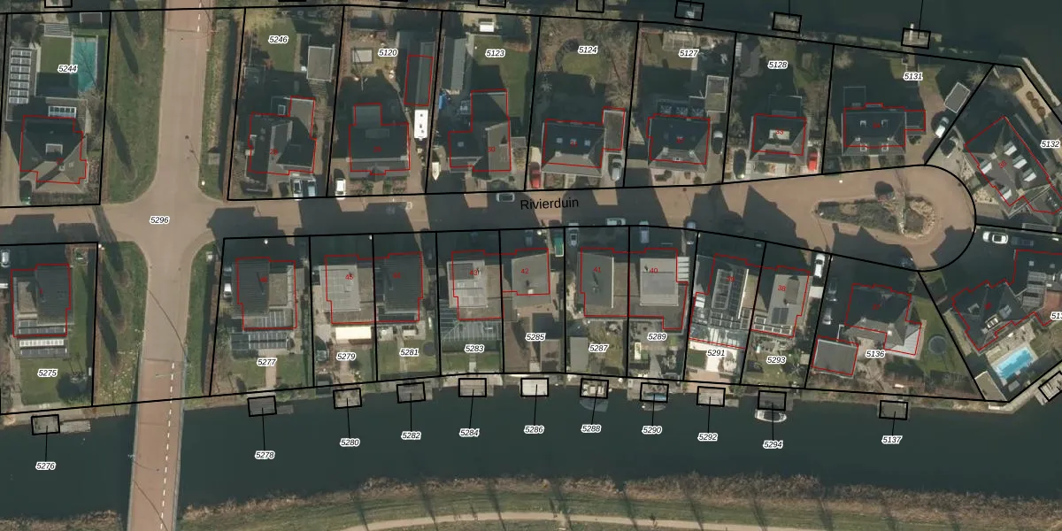 Het perceel waarop Rivierduin 42 staat heeft een oppervlakte van 324 m². Dit is een groot perceel. De perceeloppervlakte wordt geregistreerd door het Kadaster. Gedetailleerde informatie over de maten van dit perceel kunt u vinden in het rapport Kadastrale kaart met maatvoering van Rivierduin 42.
