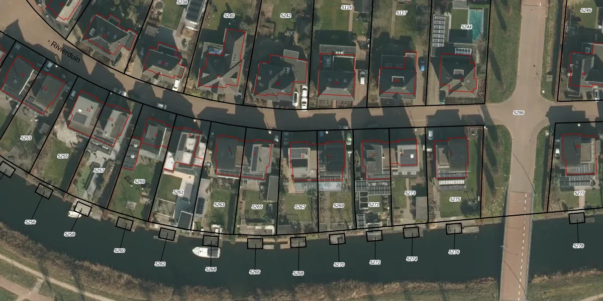 Het perceel waarop Rivierduin 5 staat heeft een oppervlakte van 440 m². Dit is een groot perceel. De perceeloppervlakte wordt geregistreerd door het Kadaster. Gedetailleerde informatie over de maten van dit perceel kunt u vinden in het rapport Kadastrale kaart met maatvoering van Rivierduin 5.