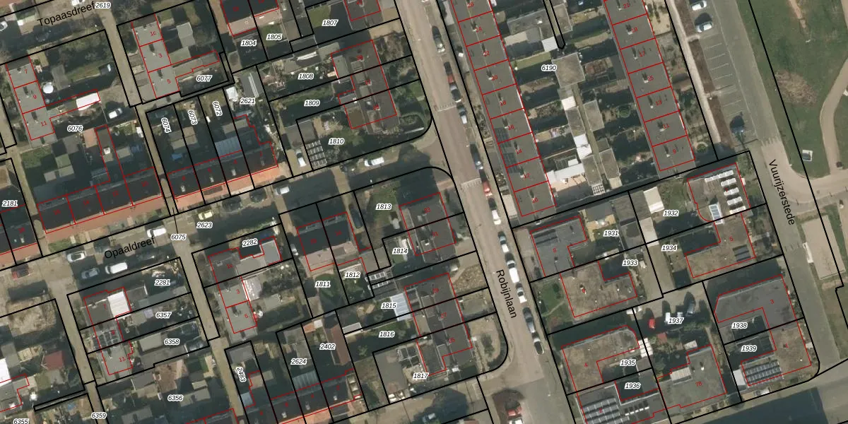 Het perceel waarop Robijnlaan 33 staat heeft een oppervlakte van 310 m². Dit is een groot perceel. De perceeloppervlakte wordt geregistreerd door het Kadaster. Gedetailleerde informatie over de maten van dit perceel kunt u vinden in het rapport Kadastrale kaart met maatvoering van Robijnlaan 33.