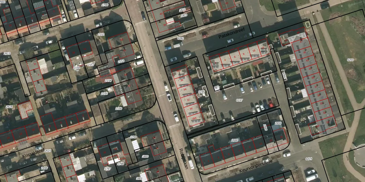 Het perceel waarop Robijnlaan 34 staat heeft een oppervlakte van 725 m². Dit is een groot perceel. De perceeloppervlakte wordt geregistreerd door het Kadaster. Gedetailleerde informatie over de maten van dit perceel kunt u vinden in het rapport Kadastrale kaart met maatvoering van Robijnlaan 34.