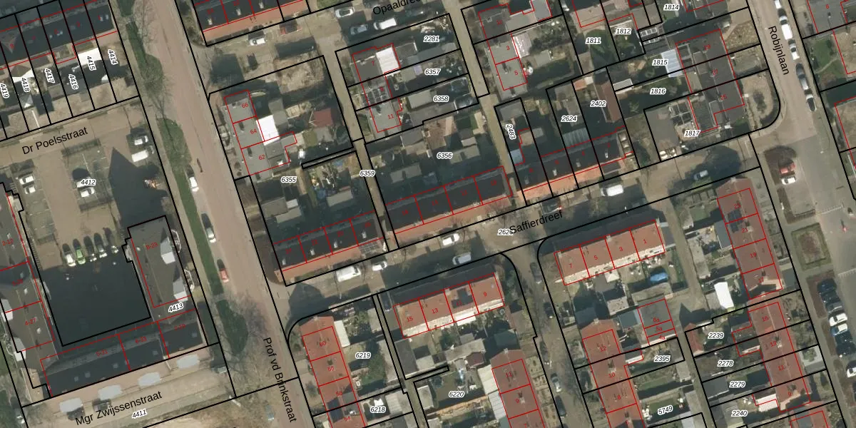 Saffierdreef 14 is gelegen op kadastraal perceel CUI00A6356. Deze kadastrale aanduiding is uniek en wordt gebruikt door het Kadaster om eigendomsrechten en andere zakelijke rechten vast te leggen. Het perceel maakt onderdeel uit van de kadastrale gemeente Cuijk.