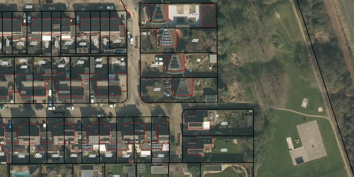 Het perceel waarop Sering 28 staat heeft een oppervlakte van 607 m². Dit is een groot perceel. De perceeloppervlakte wordt geregistreerd door het Kadaster. Gedetailleerde informatie over de maten van dit perceel kunt u vinden in het rapport Kadastrale kaart met maatvoering van Sering 28.