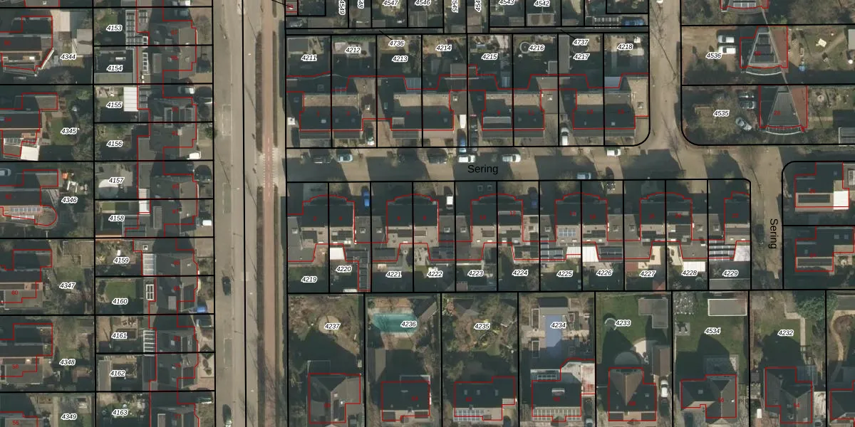 Het perceel waarop Sering 8 staat heeft een oppervlakte van 257 m². Dit is een middelgroot perceel. De perceeloppervlakte wordt geregistreerd door het Kadaster. Gedetailleerde informatie over de maten van dit perceel kunt u vinden in het rapport Kadastrale kaart met maatvoering van Sering 8.