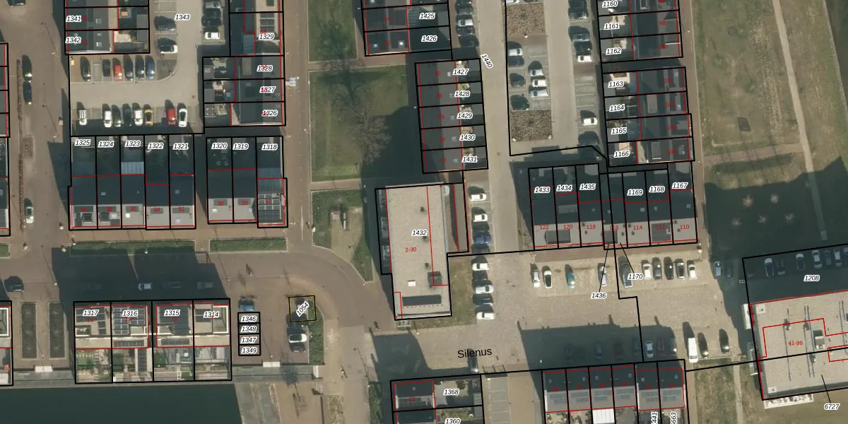 Het perceel waarop Silenus 6 staat heeft een oppervlakte van 547 m². Dit is een groot perceel. De perceeloppervlakte wordt geregistreerd door het Kadaster. Gedetailleerde informatie over de maten van dit perceel kunt u vinden in het rapport Kadastrale kaart met maatvoering van Silenus 6.