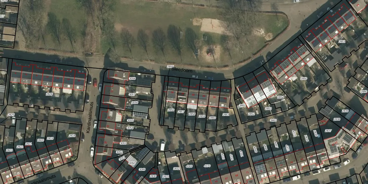 Gebruik de zoekbalk of klik op een perceel voor informatie over de adressen binnen dit perceel.