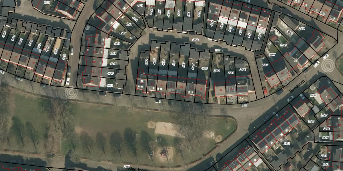 Het perceel waarop Sleedoorn 33 staat heeft een oppervlakte van 187 m². Dit is een middelgroot perceel. De perceeloppervlakte wordt geregistreerd door het Kadaster. Gedetailleerde informatie over de maten van dit perceel kunt u vinden in het rapport Kadastrale kaart met maatvoering van Sleedoorn 33.
