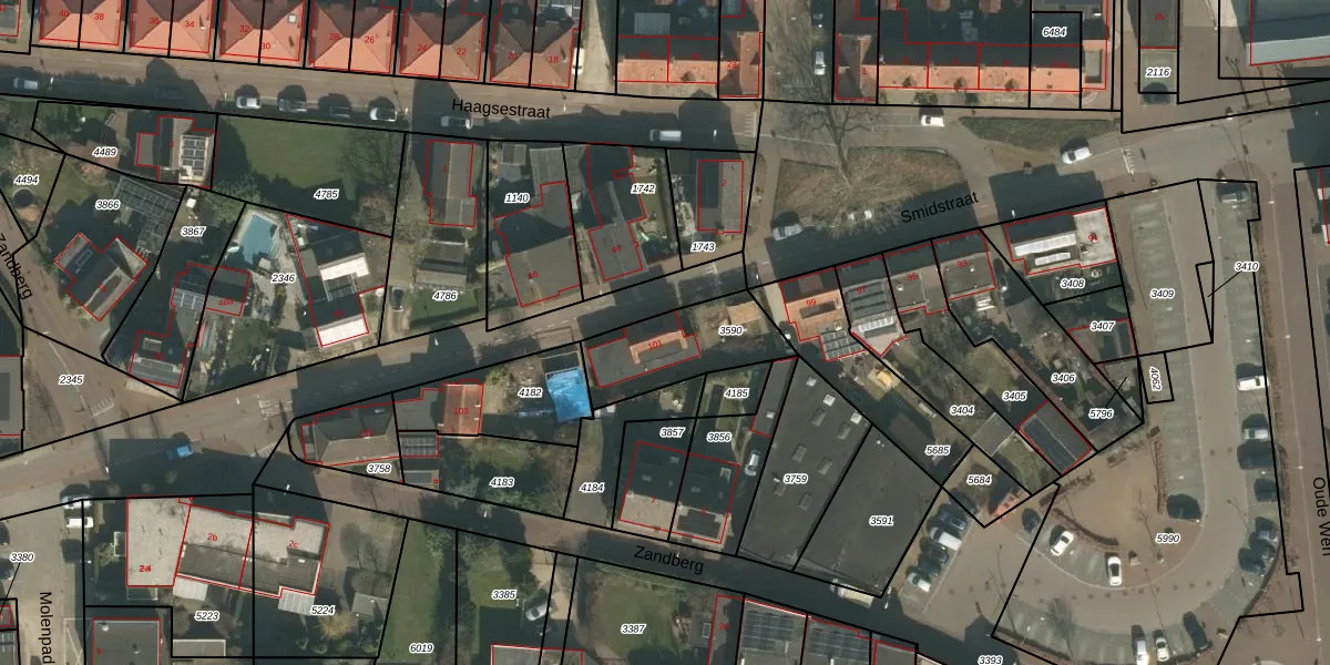 Het perceel waarop Smidstraat 101 staat heeft een oppervlakte van 326 m². Dit is een groot perceel. De perceeloppervlakte wordt geregistreerd door het Kadaster. Gedetailleerde informatie over de maten van dit perceel kunt u vinden in het rapport Kadastrale kaart met maatvoering van Smidstraat 101.