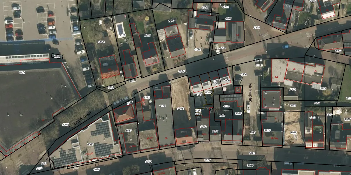 Het perceel waarop Smidstraat 111 staat heeft een oppervlakte van 495 m². Dit is een groot perceel. De perceeloppervlakte wordt geregistreerd door het Kadaster. Gedetailleerde informatie over de maten van dit perceel kunt u vinden in het rapport Kadastrale kaart met maatvoering van Smidstraat 111.