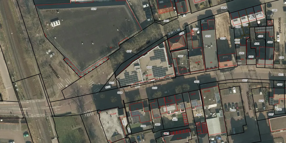 Smidstraat 141 is gelegen op kadastraal perceel CUI00C6009. Deze kadastrale aanduiding is uniek en wordt gebruikt door het Kadaster om eigendomsrechten en andere zakelijke rechten vast te leggen. Het perceel maakt onderdeel uit van de kadastrale gemeente Cuijk.