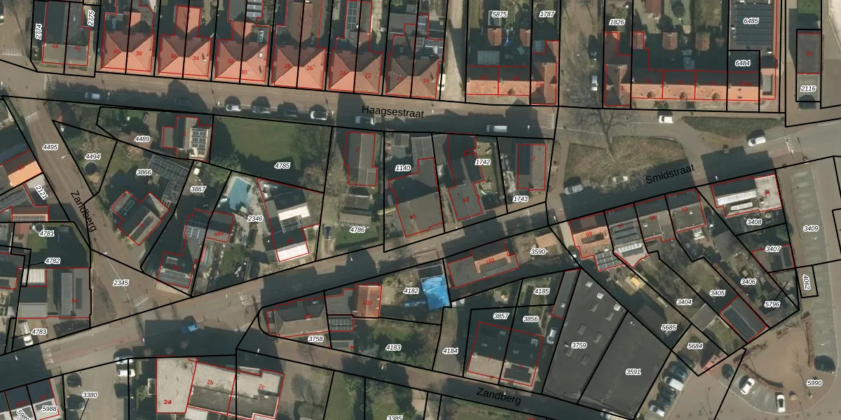 Het perceel waarop Smidstraat 46 staat heeft een oppervlakte van 345 m². Dit is een groot perceel. De perceeloppervlakte wordt geregistreerd door het Kadaster. Gedetailleerde informatie over de maten van dit perceel kunt u vinden in het rapport Kadastrale kaart met maatvoering van Smidstraat 46.