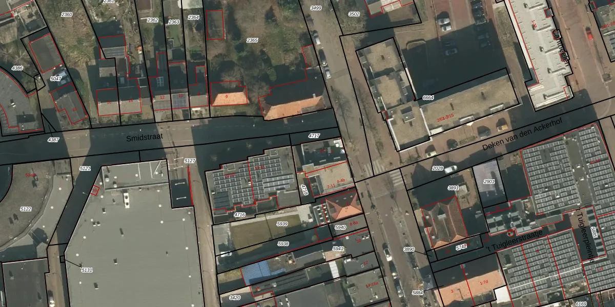 Smidstraat 5 is gelegen op kadastraal perceel CUI00C4718. Deze kadastrale aanduiding is uniek en wordt gebruikt door het Kadaster om eigendomsrechten en andere zakelijke rechten vast te leggen. Het perceel maakt onderdeel uit van de kadastrale gemeente Cuijk.