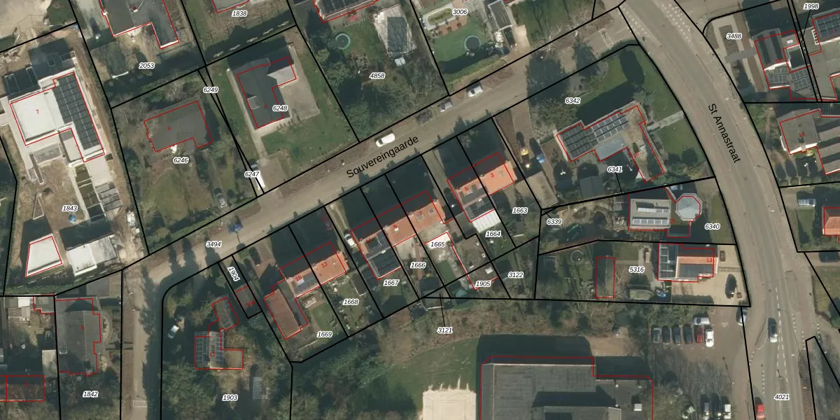 Het perceel waarop Souvereingaarde 7 staat heeft een oppervlakte van 310 m². Dit is een groot perceel. De perceeloppervlakte wordt geregistreerd door het Kadaster. Gedetailleerde informatie over de maten van dit perceel kunt u vinden in het rapport Kadastrale kaart met maatvoering van Souvereingaarde 7.