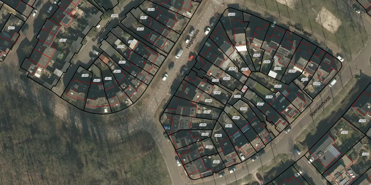 Het perceel waarop Sperwerhorst 11 staat heeft een oppervlakte van 180 m². Dit is een middelgroot perceel. De perceeloppervlakte wordt geregistreerd door het Kadaster. Gedetailleerde informatie over de maten van dit perceel kunt u vinden in het rapport Kadastrale kaart met maatvoering van Sperwerhorst 11.