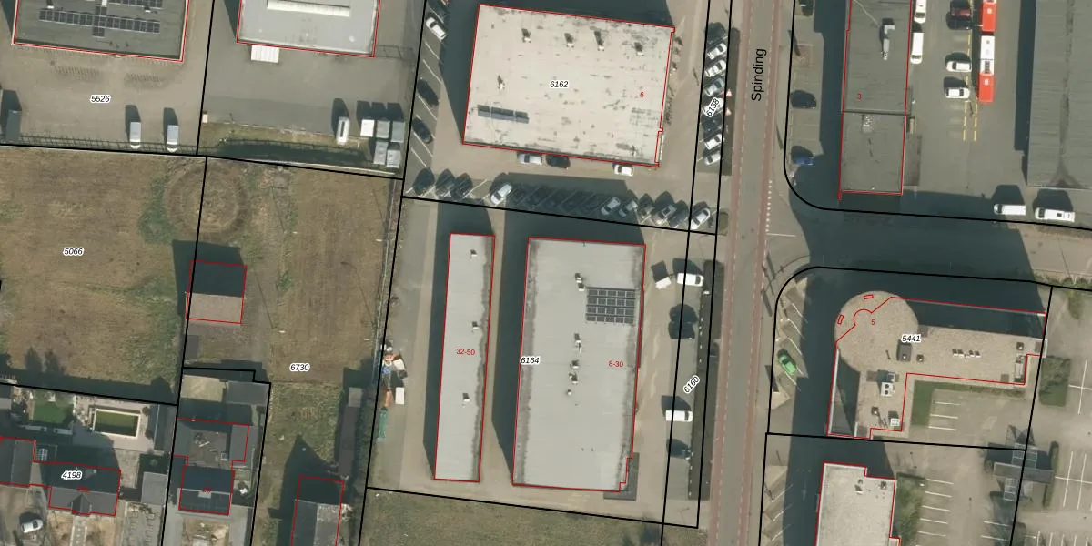 Het perceel waarop Spinding 20 staat heeft een oppervlakte van 2895 m². Dit is een zeer groot perceel. De perceeloppervlakte wordt geregistreerd door het Kadaster. Gedetailleerde informatie over de maten van dit perceel kunt u vinden in het rapport Kadastrale kaart met maatvoering van Spinding 20.