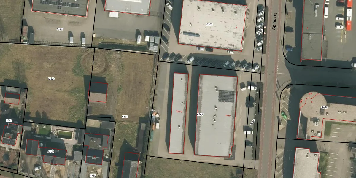 Het perceel waarop Spinding 46 staat heeft een oppervlakte van 2895 m². Dit is een zeer groot perceel. De perceeloppervlakte wordt geregistreerd door het Kadaster. Gedetailleerde informatie over de maten van dit perceel kunt u vinden in het rapport Kadastrale kaart met maatvoering van Spinding 46.