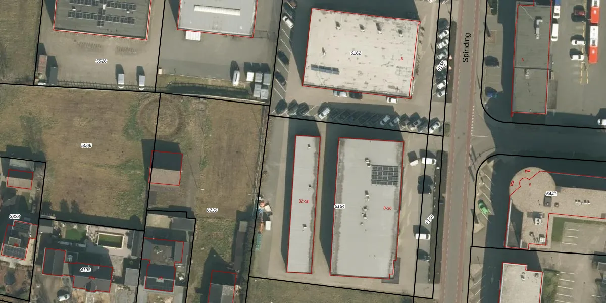 Het perceel waarop Spinding 48 staat heeft een oppervlakte van 2895 m². Dit is een zeer groot perceel. De perceeloppervlakte wordt geregistreerd door het Kadaster. Gedetailleerde informatie over de maten van dit perceel kunt u vinden in het rapport Kadastrale kaart met maatvoering van Spinding 48.