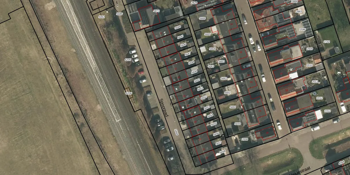 Spoorpad 14 is gelegen op kadastraal perceel CUI00C5650. Deze kadastrale aanduiding is uniek en wordt gebruikt door het Kadaster om eigendomsrechten en andere zakelijke rechten vast te leggen. Het perceel maakt onderdeel uit van de kadastrale gemeente Cuijk.