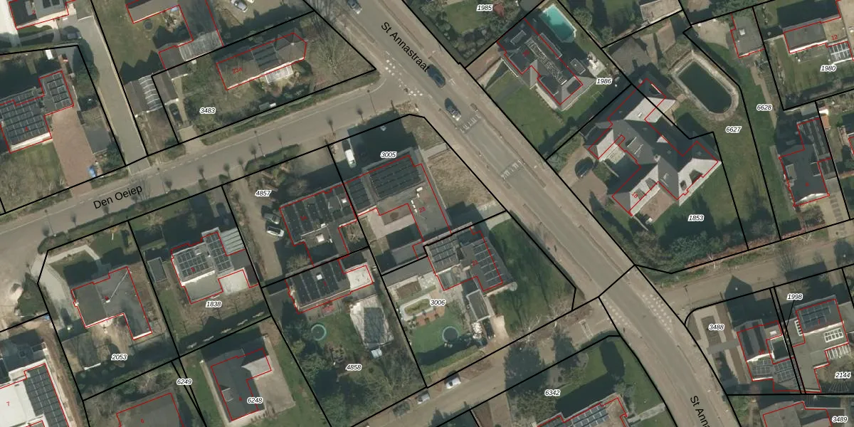 St Annastraat 23 is gelegen op kadastraal perceel CUI00A3005. Deze kadastrale aanduiding is uniek en wordt gebruikt door het Kadaster om eigendomsrechten en andere zakelijke rechten vast te leggen. Het perceel maakt onderdeel uit van de kadastrale gemeente Cuijk.