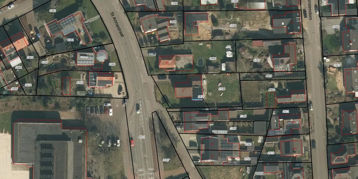 Gebruik de zoekbalk of klik op een perceel voor informatie over de adressen binnen dit perceel.