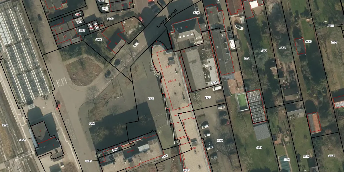Het perceel waarop Stationsplein 22 staat heeft een oppervlakte van 1730 m². Dit is een zeer groot perceel. De perceeloppervlakte wordt geregistreerd door het Kadaster. Gedetailleerde informatie over de maten van dit perceel kunt u vinden in het rapport Kadastrale kaart met maatvoering van Stationsplein 22.