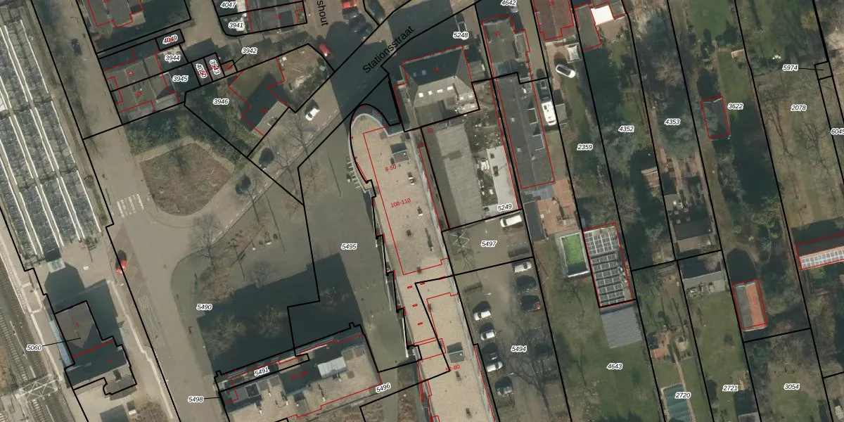 Het perceel waarop Stationsplein 46 staat heeft een oppervlakte van 1730 m². Dit is een zeer groot perceel. De perceeloppervlakte wordt geregistreerd door het Kadaster. Gedetailleerde informatie over de maten van dit perceel kunt u vinden in het rapport Kadastrale kaart met maatvoering van Stationsplein 46.
