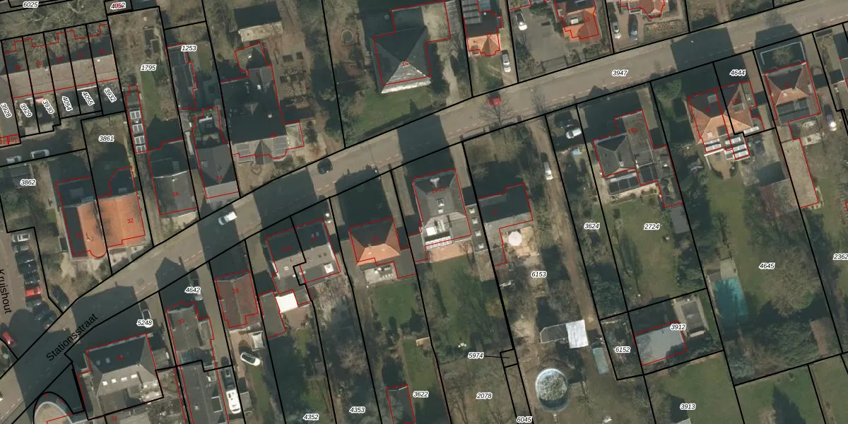 Het perceel waarop Stationsstraat 21 staat heeft een oppervlakte van 2013 m². Dit is een zeer groot perceel. De perceeloppervlakte wordt geregistreerd door het Kadaster. Gedetailleerde informatie over de maten van dit perceel kunt u vinden in het rapport Kadastrale kaart met maatvoering van Stationsstraat 21.