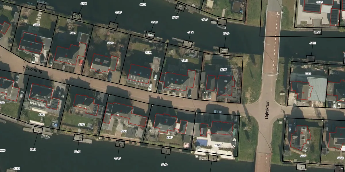Het perceel waarop Stroomrug 15 staat heeft een oppervlakte van 653 m². Dit is een groot perceel. De perceeloppervlakte wordt geregistreerd door het Kadaster. Gedetailleerde informatie over de maten van dit perceel kunt u vinden in het rapport Kadastrale kaart met maatvoering van Stroomrug 15.