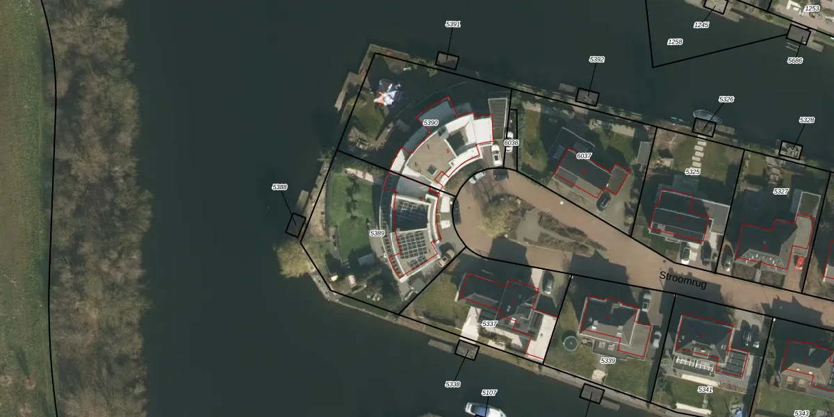 Stroomrug 8 is gelegen op kadastraal perceel CUI00A5389. Deze kadastrale aanduiding is uniek en wordt gebruikt door het Kadaster om eigendomsrechten en andere zakelijke rechten vast te leggen. Het perceel maakt onderdeel uit van de kadastrale gemeente Cuijk.