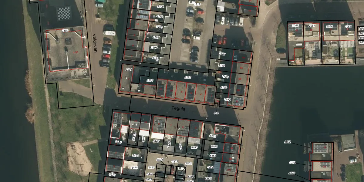 Het perceel waarop Tegula 8 staat heeft een oppervlakte van 560 m². Dit is een groot perceel. De perceeloppervlakte wordt geregistreerd door het Kadaster. Gedetailleerde informatie over de maten van dit perceel kunt u vinden in het rapport Kadastrale kaart met maatvoering van Tegula 8.