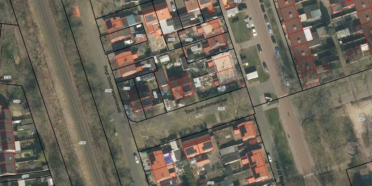 Het perceel waarop Titus Brandsmastraat 2 staat heeft een oppervlakte van 1825 m². Dit is een zeer groot perceel. De perceeloppervlakte wordt geregistreerd door het Kadaster. Gedetailleerde informatie over de maten van dit perceel kunt u vinden in het rapport Kadastrale kaart met maatvoering van Titus Brandsmastraat 2.