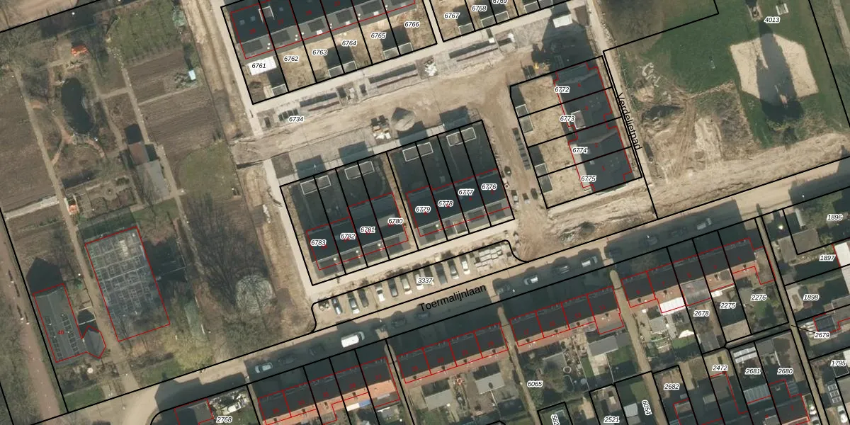 Het perceel waarop Toermalijnlaan 8 staat heeft een oppervlakte van 177 m². Dit is een middelgroot perceel. De perceeloppervlakte wordt geregistreerd door het Kadaster. Gedetailleerde informatie over de maten van dit perceel kunt u vinden in het rapport Kadastrale kaart met maatvoering van Toermalijnlaan 8.