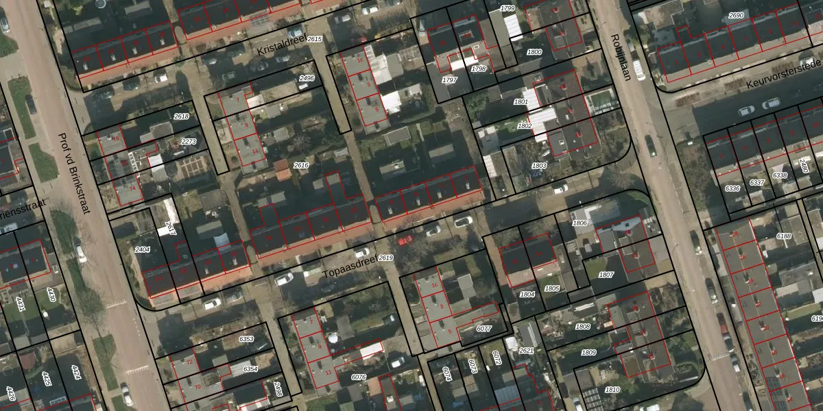 Topaasdreef 6 is gelegen op kadastraal perceel CUI00A2616. Deze kadastrale aanduiding is uniek en wordt gebruikt door het Kadaster om eigendomsrechten en andere zakelijke rechten vast te leggen. Het perceel maakt onderdeel uit van de kadastrale gemeente Cuijk.