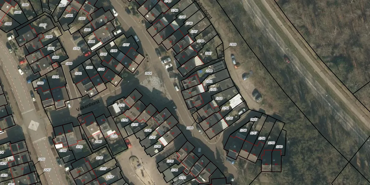Het perceel waarop Valkenhorst 49 staat heeft een oppervlakte van 141 m². Dit is een middelgroot perceel. De perceeloppervlakte wordt geregistreerd door het Kadaster. Gedetailleerde informatie over de maten van dit perceel kunt u vinden in het rapport Kadastrale kaart met maatvoering van Valkenhorst 49.